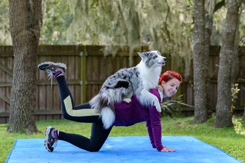 3. Perch - dog perches on human while human performs an exercise
