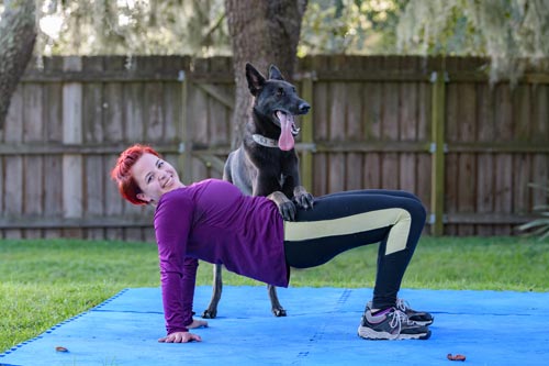 4. Load – dog stands, sits or downs on human while human performs an exercise